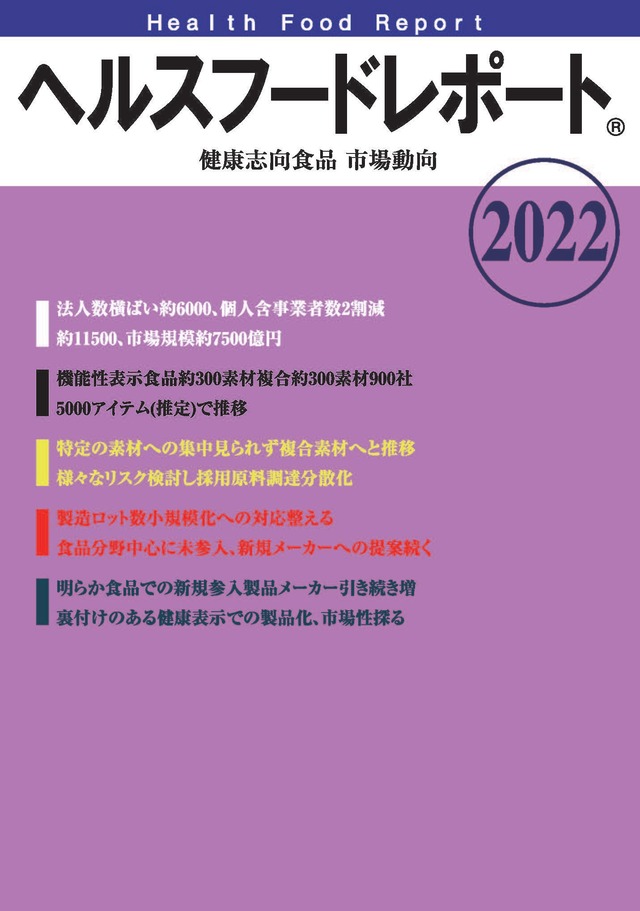 pdf版 「健康志向食品市場動向2022」1,500円送料無し。ヘルスフードレポート healthfoodreportⓇ