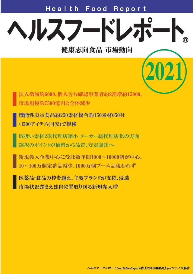 pdf版 「健康志向食品市場動向2021」1,500円送料無し。ヘルスフードレポート healthfoodreportⓇ