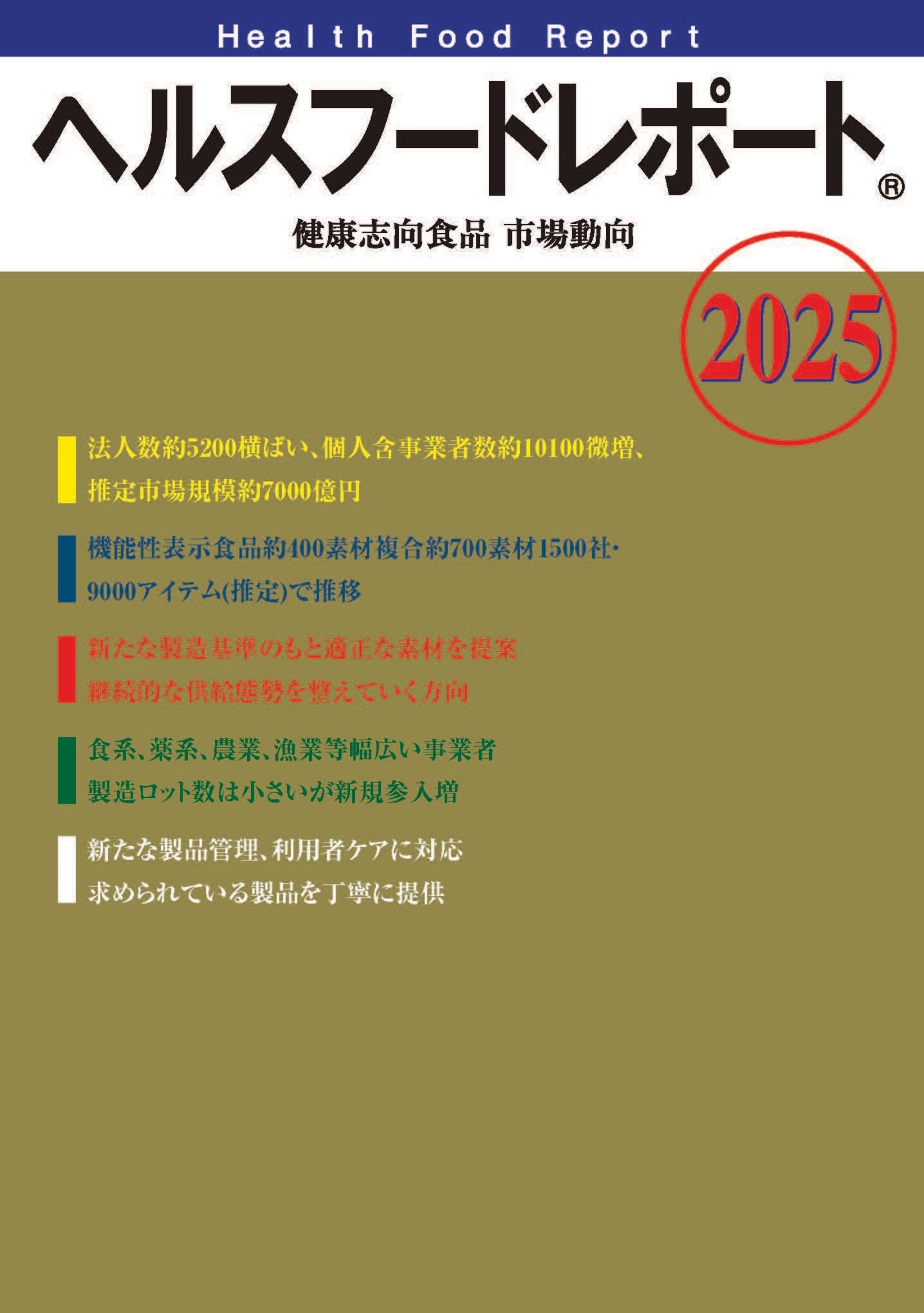 無料見本 紙印刷版「健康志向食品市場動向2025」1,500円送料215円。 ヘルスフードレポート healthfoodreportⓇ