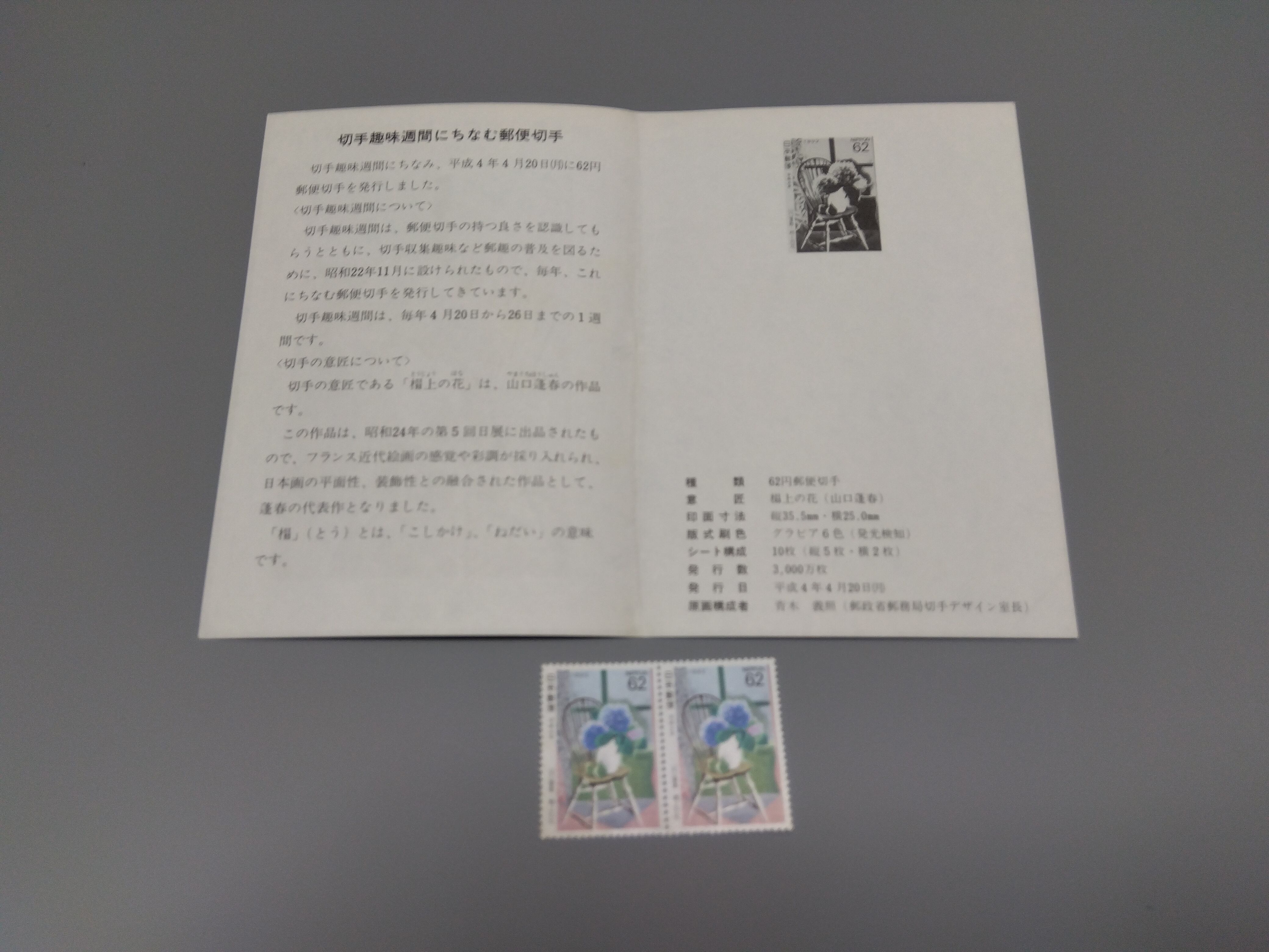 29009販売価格500円「切手趣味週間にちなむ郵便切手19920420発行」『used report 』山の下出版